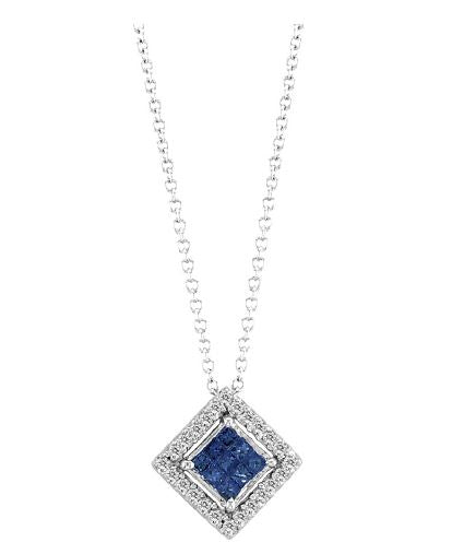 .57CT DIAMOND & AAA SAPPHIRE 14KT WHITE GOLD ROUND & PRINCESS FLOATING PENDANT