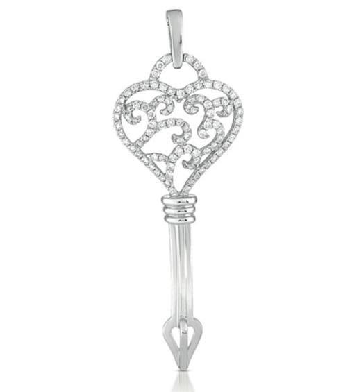 .80CT DIAMOND 14K WHITE GOLD 3D OPEN FILIGREE KEY TO YOUR HEART FLOATING PENDANT