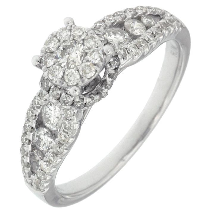 14KT WHITE GOLD FRIENDSHIP PROMISE RING. 3D CLUSTER FLOWER DESIGN. ROUND DIAMONDS ARE F/G COLOR, VSSI CLARITY .80 CARATS. RING SIZE 7. CAN BE SIZED BY OUR MASTER JEWELER UPON REQUEST. WRITTEN APPRAISAL AVAILABLE. COMES IN A PRESENTABLE GIFT BOX.