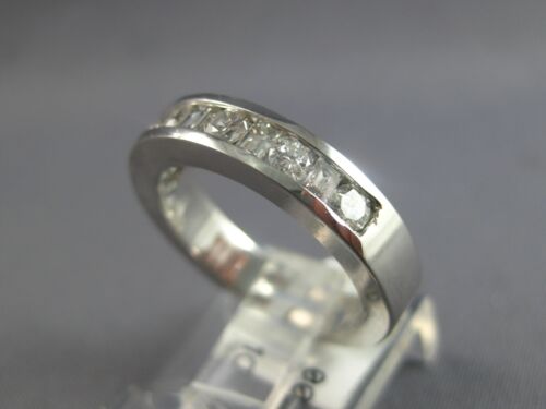 14KT WHITE GOLD WEDDING ANNIVERSARY RING. 3D CLASSIC CHANNEL DESIGN. ROUND AND BAGUETTE DIAMONDS ARE F/G COLOR, VSSI CLARITY .80 CARATS. MEASURES 4mm WIDE. RING SIZE 6. CAN BE SIZED BY OUR MASTER JEWELER UPON REQUEST. WRITTEN APPRAISAL AVAILABLE. COMES IN A PRESENTABLE GIFT BOX.