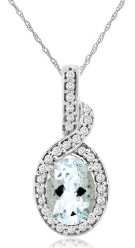 14KT WHITE GOLD FLOATING PENDANT. 3D HALO LOVE KNOT DESIGN. ROUND DIAMONDS ARE F/G COLOR, VSSI CLARITY .12 CARATS. AAA EXTRA FACETED OVAL AQUAMARINE IS .68 CARATS. COMES ON A 14KT GOLD DIAMOND CUT 16" INCH CHAIN. WRITTEN APPRAISAL AVAILABLE. COMES IN A PRESENTABLE GIFT BOX.