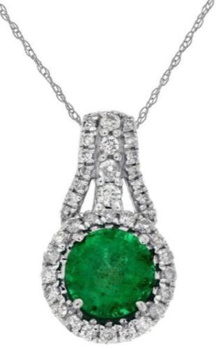 .80CT DIAMOND & AAA EMERALD 14K WHITE GOLD ROUND HALO TEAR DROP FLOATING PENDANT