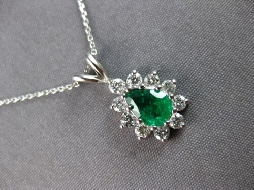 .80CT DIAMOND & AAA EMERALD 14KT WHITE GOLD 3D PEAR SHAPE & ROUND PENDANT #27923