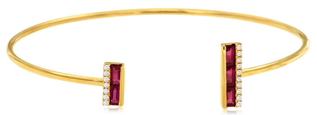 .80CT DIAMOND & AAA RUBY 14KT YELLOW GOLD ROUND & BAGUETTE BAR BANGLE BRACELET