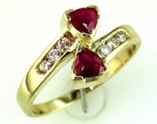 .80CT DIAMOND & AAA RUBY 14KT YELLOW GOLD TRILLION & ROUND CRISS CROSS LOVE RING