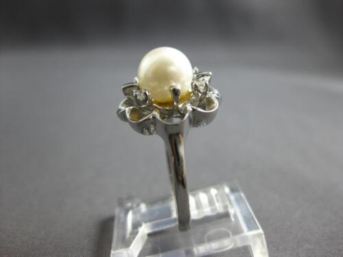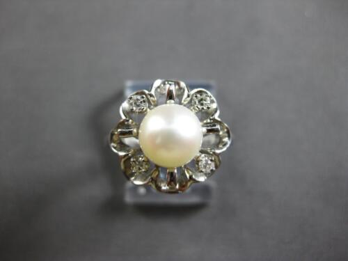 14KT WHITE GOLD FUN RING. 3D OPEN FILIGREE FLOWER DESIGN. DIAMONDS ARE F/G COLOR, VSSI CLARITY .80 CARATS. FEATURES AAA 7.5mm SOUTH SEA PEARL. RING MEASURES 14.5mm WIDE. RING SIZE 6.5. CAN BE SIZED BY OUR MASTER JEWELER UPON REQUEST. WRITTEN APPRAISAL AVAILABLE. COMES IN A PRESENTABLE GIFT BOX.