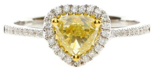 .80CT WHITE & FANCY YELLOW DIAMOND 18KT 2 TONE GOLD HEART SHAPE ENGAGEMENT RING