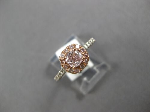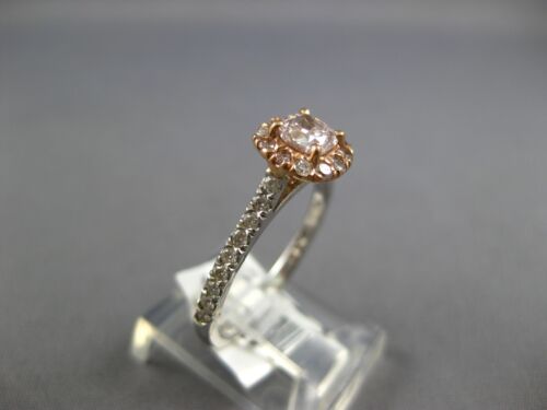 GIA CERTIFIED 14KT WHITE AND ROSE GOLD ENGAGEMENT RING. 3D CLASSIC HALO DESIGN. WHITE DIAMONDS ARE F/G COLOR, VSSI CLARITY .20 CARATS. SMALL PINK DIAMONDS ARE .17 CARATS. CENTER BROWNISH PINK DIAMOND IS .43 CARATS. MEASURES 8mm WIDE. RING SIZE 6.25. CAN BE SIZED BY OUR MASTER JEWELER UPON REQUEST. WRITTEN APPRAISAL AVAILABLE. COMES IN A PRESENTABLE GIFT BOX.