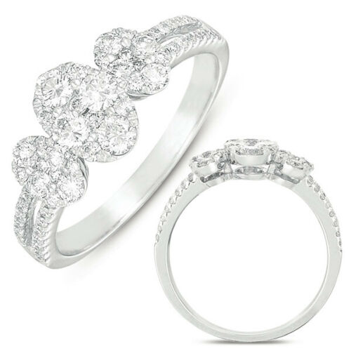 14KT WHITE GOLD FUN RING. 3D CLASSIC CLUSTER PAST PRESENT FUTURE OVAL DESIGN. ROUND DIAMONDS ARE F/G COLOR, VSSI CLARITY .81 CARATS. MEASURES 8mm WIDE. RING SIZE 6.5. CAN BE SIZED BY OUR MASTER JEWELER UPON REQUEST. WRITTEN APPRAISAL AVAILABLE. COMES IN A PRESENTABLE GIFT BOX.