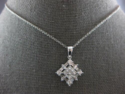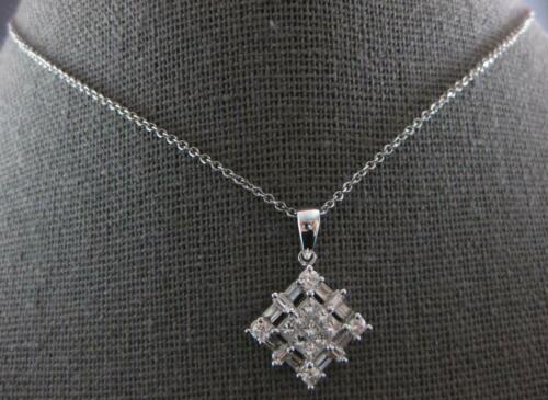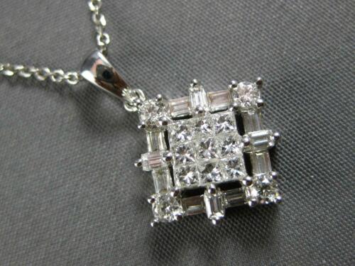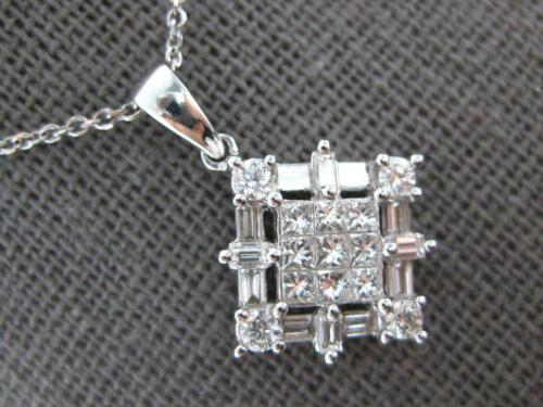 18KT WHITE GOLD FLOATING PENDANT. 3D INVISIBLE SQUARE DESIGN. ROUND, BAGUETTE, AND PRINCESS CUT DIAMONDS ARE F/G COLOR, VSSI CLARITY .81 CARATS. MEASURES 21mm X 14mm. COMES ON A 14KT GOLD DIAMOND CUT 16" INCH CHAIN. WRITTEN APPRAISAL AVAILABLE. COMES IN A PRESENTABLE GIFT BOX.