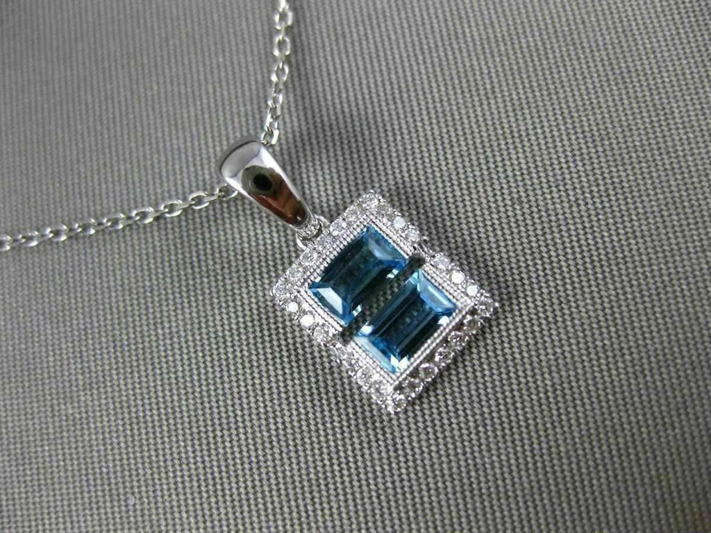 .81CT DIAMOND & AAA BLUE TOPAZ 14KT WHITE GOLD RECTANGULAR ILLUSION LOVE PENDANT