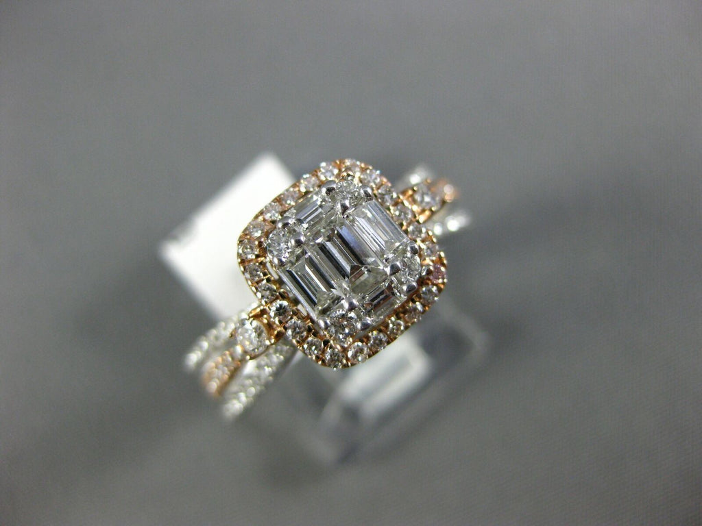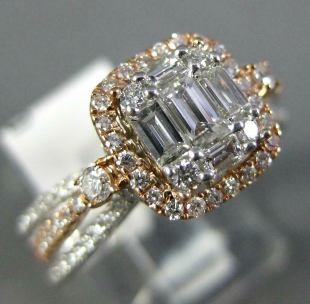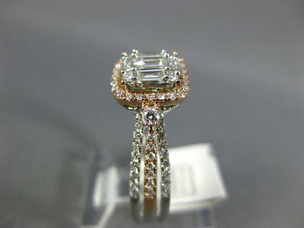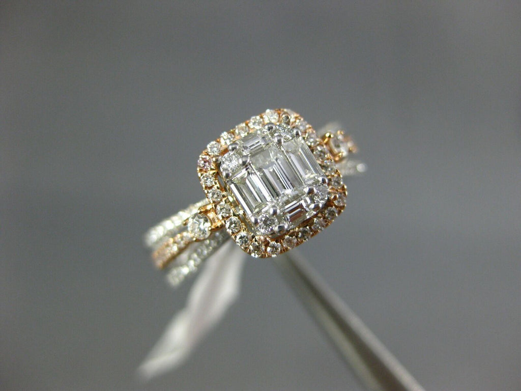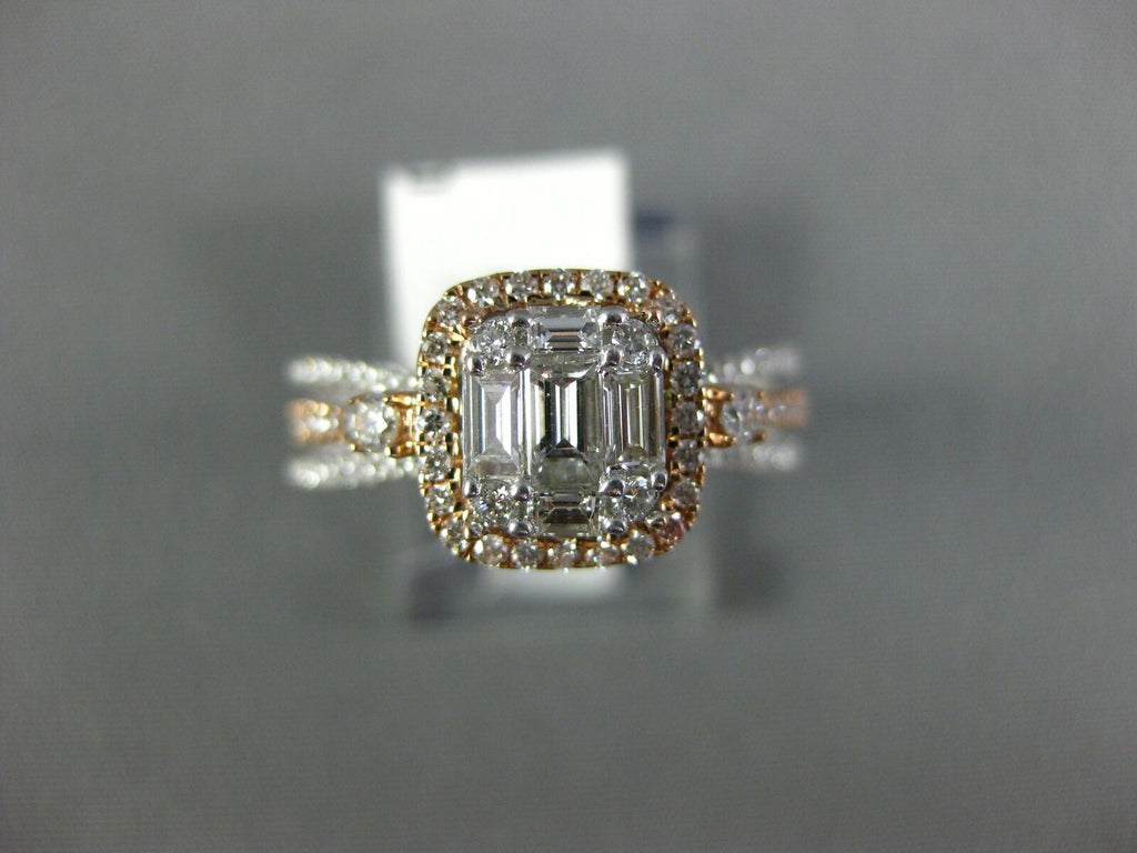 .82CT DIAMOND 14KT WHITE & ROSE GOLD 3D ROUND & BAGUETTE HALO ENGAGEMENT RING