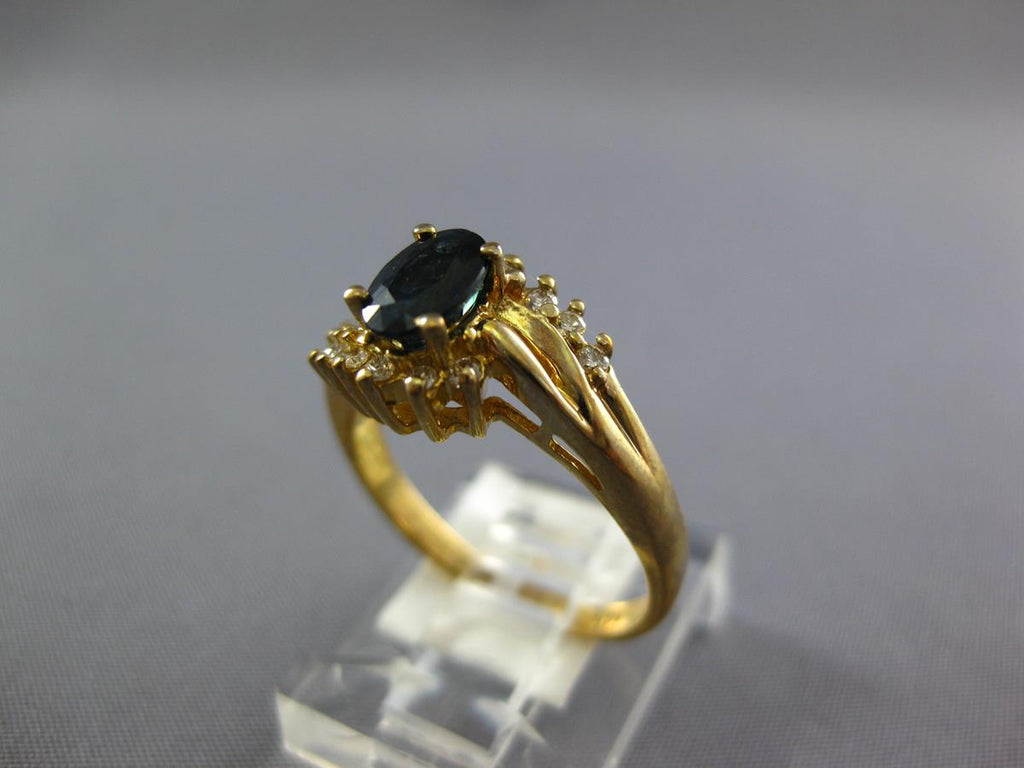 14KT YELLOW GOLD FRIENDSHIP PROMISE RING. 3D FLOWER DESIGN. ROUND DIAMONDS ARE F/G COLOR VSSI CLARITY .13 CARATS. AAA OVAL SAPPHIRE IS .69 CARATS. MEASURES 7mm WIDE. RING SIZE 5.5. CAN BE SIZED BY OUR MASTER JEWELER UPON REQUEST. WRITTEN APPRAISAL AVAILABLE. COMES IN A PRESENTABLE GIFT BOX.