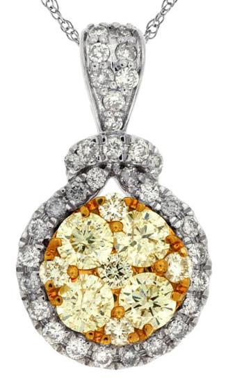 .82CT WHITE & FANCY YELLOW DIAMOND 14K WHITE GOLD CLUSTER ROUND FLOATING PENDANT