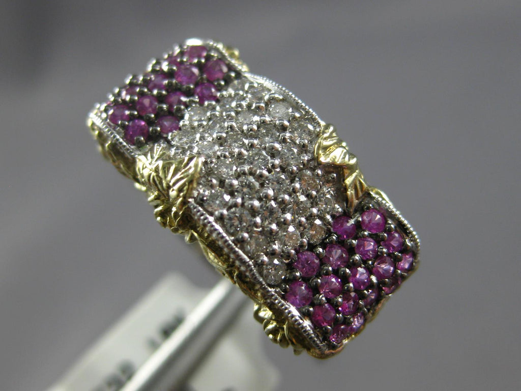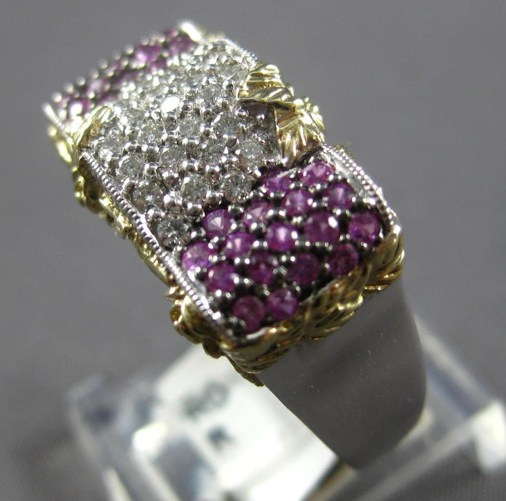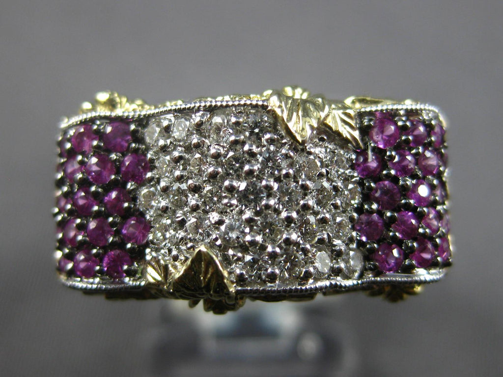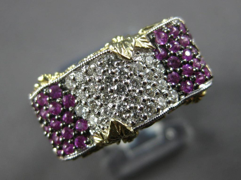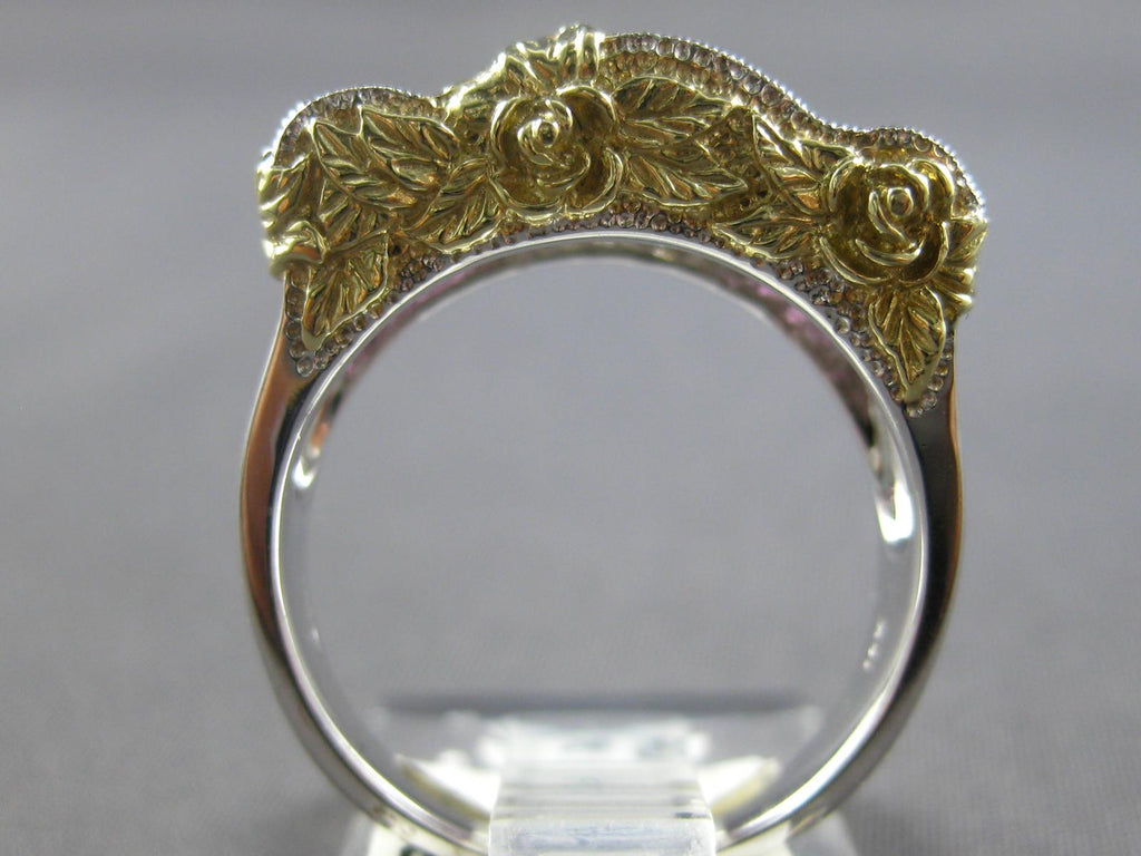 .83CT DIAMOND & AAA PINK SAPPHIRE 18K 2 TONE GOLD MULTI ROW FILIGREE FLOWER RING