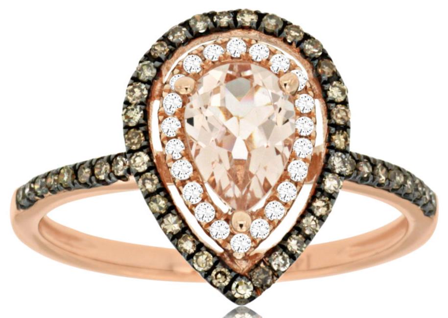 .83CT WHITE & MOCHA DIAMOND & AAA MORGANITE 14KT ROSE GOLD PEAR SHAPE FUN RING