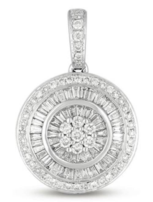 .84CT DIAMOND 14KT WHITE GOLD ROUND & BAGUETTE FLOWER BALLERINA FLOATING PENDANT