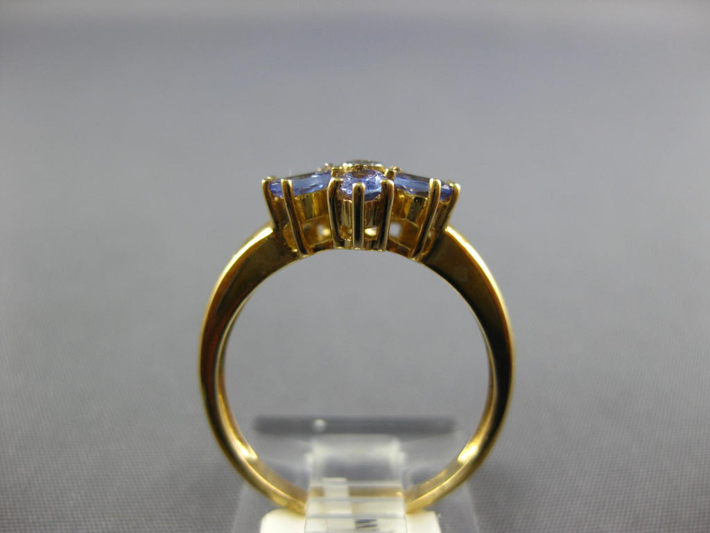 .84CT DIAMOND & AAA TANZANITE 14KT YELLOW GOLD 3D OVAL & ROUND FLOWER FUN RING