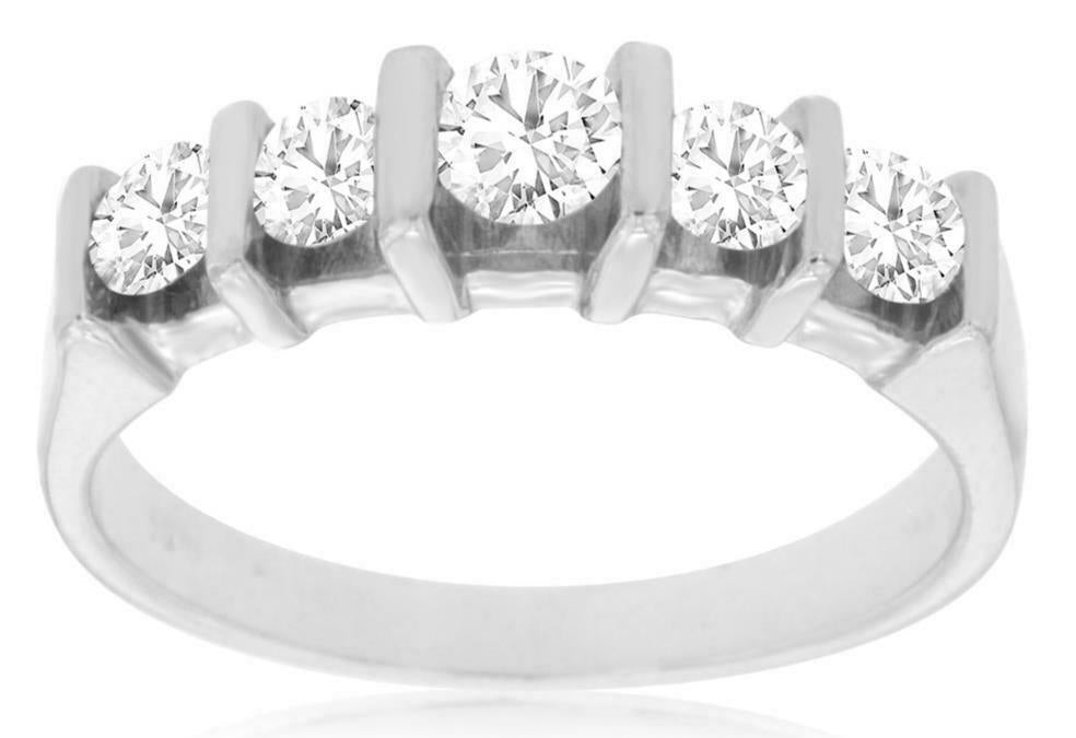.85CT DIAMOND 14KT WHITE GOLD 3D ROUND 5 STONE CHANNEL WEDDING ANNIVERSARY RING
