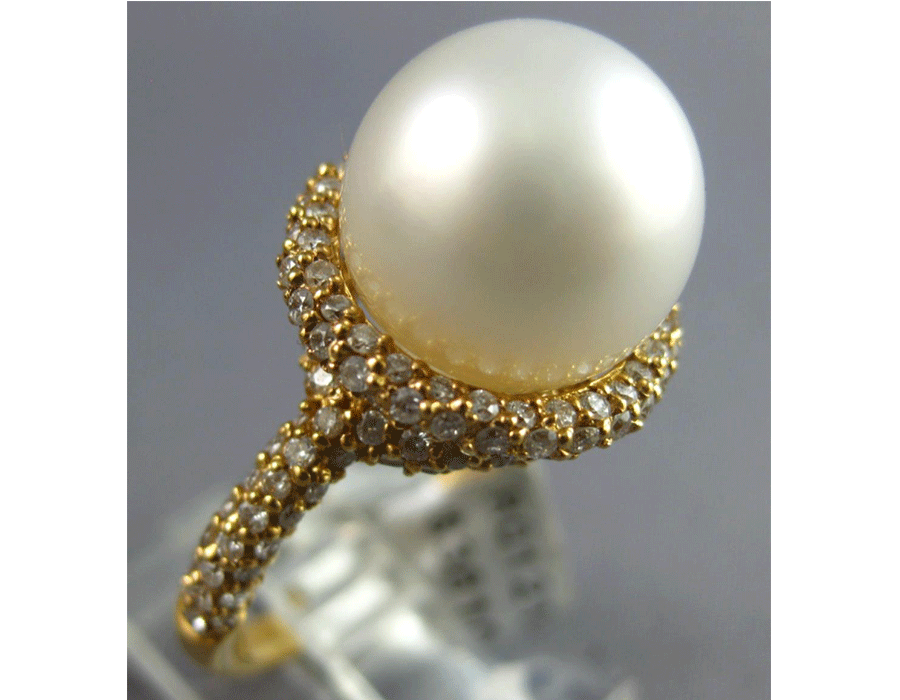 .85CT DIAMOND & AAA SOUTH SEA PEARL 18KT YELLOW GOLD CLASSIC SOLITAIRE HALO RING