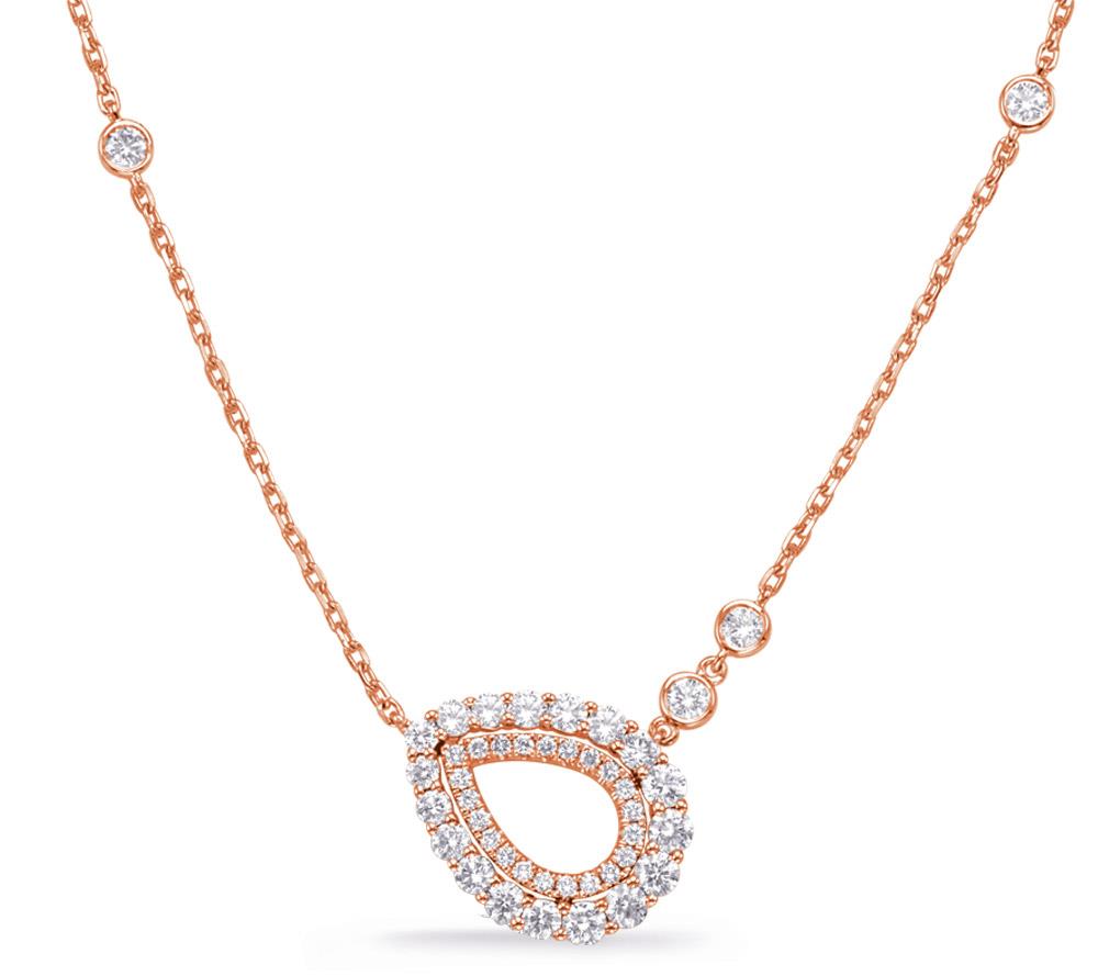 .86CT DIAMOND 14KT ROSE GOLD 3D OPEN TEAR DROP SIDEWAYS BY THE YARD FUN NECKLACE