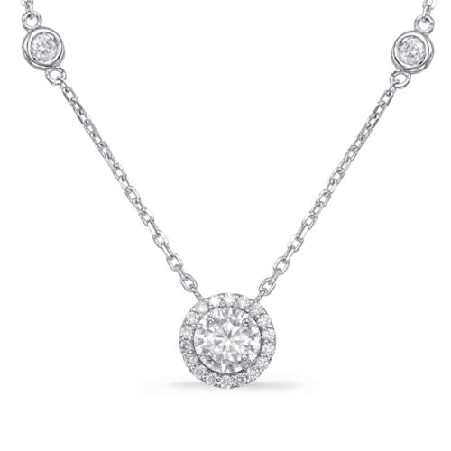 .86CT DIAMOND 14KT WHITE GOLD CLASSIC SOLITAIRE HALO BY THE YARD LOVE NECKLACE