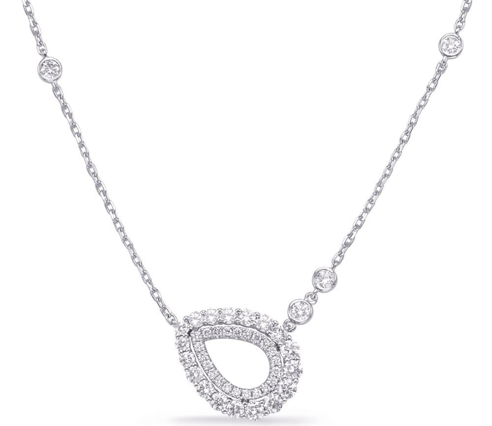 .86CT DIAMOND 14KT WHITE GOLD OPEN TEAR DROP SIDEWAYS BY THE YARD FUN NECKLACE