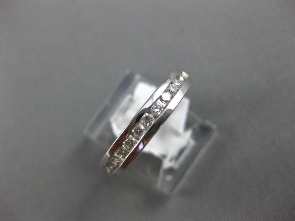 14KT WHITE GOLD ANNIVERSARY RING. 3D CLASSIC ROUND CHANNEL SEMI ETERNITY DESIGN. DIAMONDS ARE F/G COLOR, VSSI CLARITY .87 CARATS. MEASURES 4mm WIDE. RING SIZE 6.25. CAN BE SIZED BY OUR MASTER JEWELER UPON REQUEST. WRITTEN APPRAISAL AVAILABLE. COMES IN A PRESENTABLE GIFT BOX.