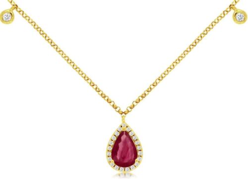 .87CT DIAMOND & AAA RUBY 14KT YELLOW GOLD PEAR SHAPE HALO BY THE YARD NECKLACE