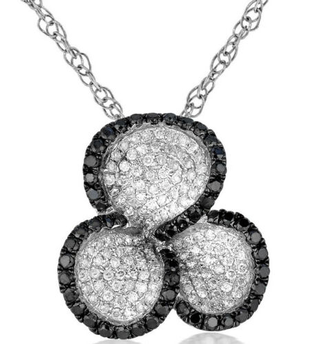 .87CT WHITE & BLACK DIAMOND 14K WHITE GOLD 3 LEAF CLOVER FLOWER FLOATING PENDANT