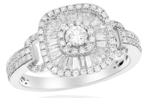 .88CT DIAMOND 14KT WHITE GOLD ROUND & BAGUETTE BALLERINA SQUARE ENGAGEMENT RING