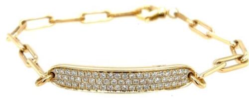 18KT YELLOW GOLD TENNIS BRACELET. 3D MULTI ROW OVAL SOLID ID LINK DESIGN. DIAMONDS ARE F/G COLOR, VSSI CLARITY .88 CARATS. 7" INCHES LONG. WRITTEN APPRAISAL AVAILABLE. COMES IN A PRESENTABLE GIFT BOX.