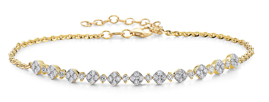 .88CT DIAMOND 18KT YELLOW GOLD MULTI FLOWER SEMI ETERNITY TENNIS LINK BRACELET