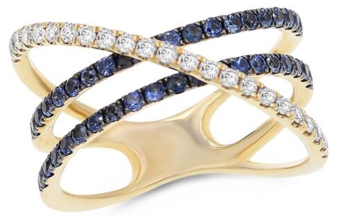 .88CT DIAMOND & AAA SAPPHIRE 14K YELLOW GOLD MULTI ROW CRISS CROSS INFINITY RING