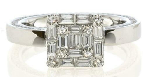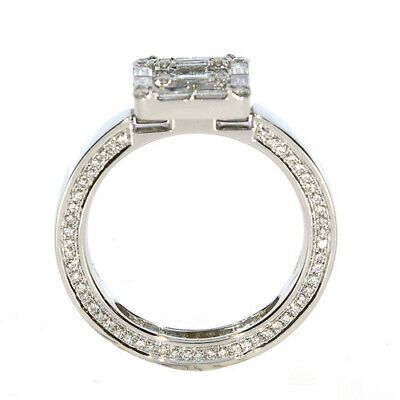 18KT WHITE GOLD RING PENDANT. 3D CLASSIC SQUARE INTERCHANGEABLE DESIGN. DIAMONDS ARE F/G COLOR, VSSI CLARITY. ROUND DIAMONDS ARE .41 CARATS. BAGUETTE DIAMONDS ARE .48 CARATS. RING SIZE 7. CAN BE SIZED BY OUR MASTER JEWELER UPON REQUEST. WRITTEN APPRAISAL AVAILABLE. COMES IN A PRESENTABLE GIFT BOX.
