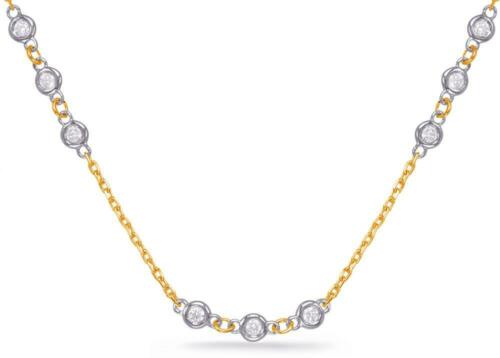 .90CT DIAMOND 14KT 2 TONE GOLD 3D 3 STONE ROUND BEZEL BY THE YARD LOVE NECKLACE
