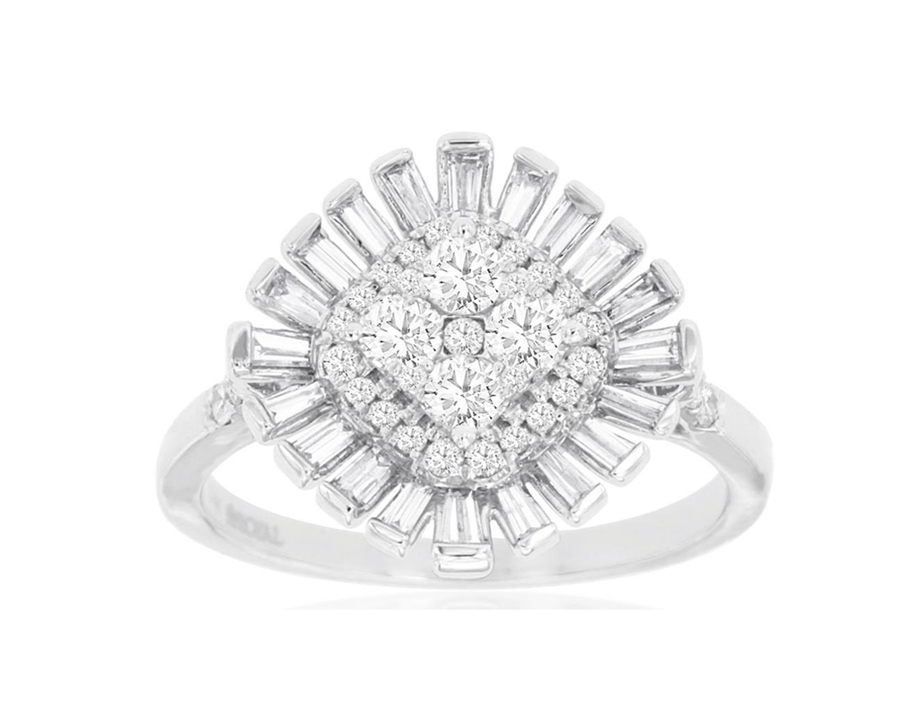 .90CT DIAMOND 14KT WHITE GOLD ROUND & BAGUETTE FLOWER SQUARE BALLERINA LOVE RING