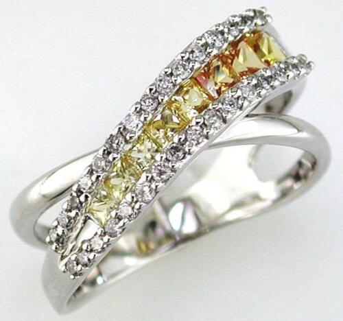 .90CT DIAMOND & AAA YELLOW SAPPHIRE 14KT WHITE GOLD RAINBOW X LOVE RAINBOW RING