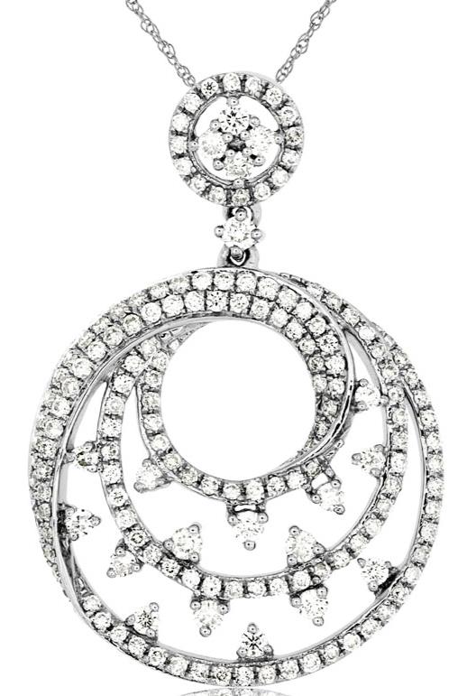 .91CT DIAMOND 14KT WHITE GOLD 3D CLASSIC MULTI CIRCULAR SWIRL FLOATING PENDANT