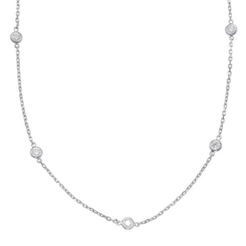 14KT WHITE GOLD LOVE NECKLACE. 3D CLASSIC BY THE YARD BEZEL DESIGN. ROUND DIAMONDS ARE F/G COLOR, VSSI CLARITY .91 CARATS. MEASURES 4mm WIDE. 18" INCHES LONG. WRITTEN APPRAISAL AVAILABLE. COMES IN A PRESENTABLE GIFT BOX.
