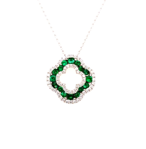 .91CT DIAMOND & AAA EMERALD 18KT WHITE GOLD OPEN FLOWER 3 ROW FLOATING PENDANT