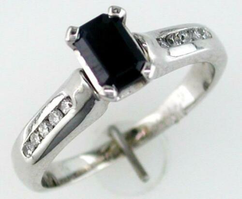 14KT WHITE GOLD LOVE RING. 3D CLASSIC DESIGN. ROUND DIAMONDS ARE F/G COLOR, VSSI CLARITY .16 CARATS. AAA EMERALD CUT SAPPHIRE IS .75 CARATS. RING SIZE 7. CAN BE SIZED BY OUR MASTER JEWELER UPON REQUEST. WRITTEN APPRAISAL AVAILABLE. COMES IN A PRESENTABLE GIFT BOX.
