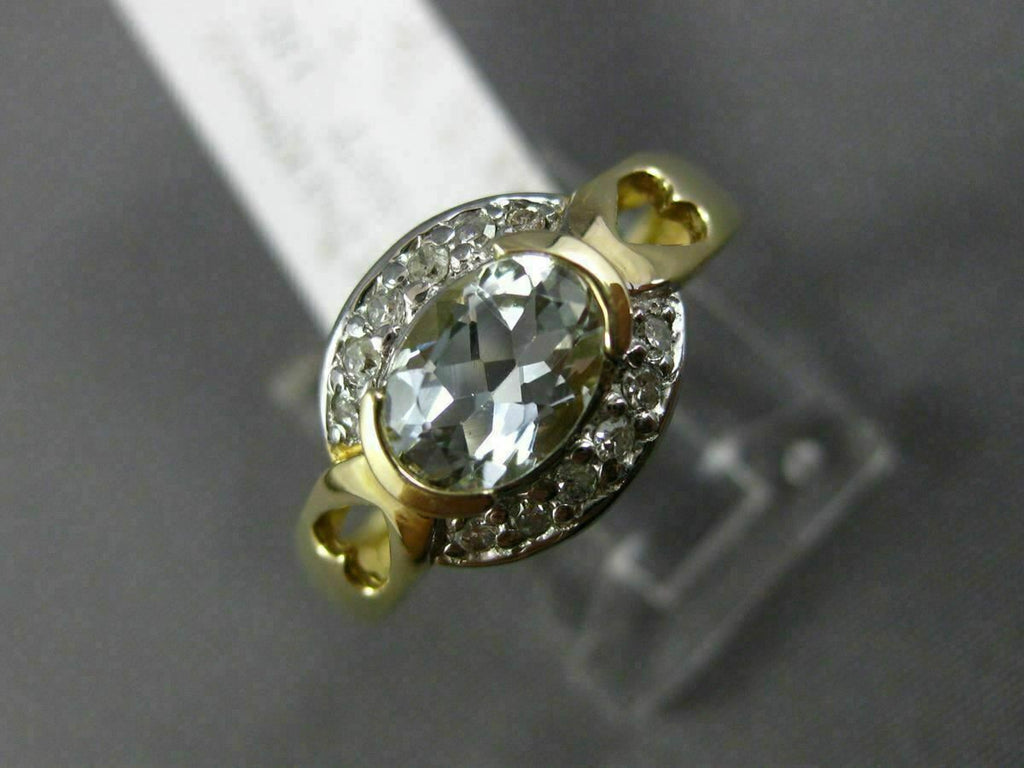 14KT YELLOW GOLD LOVE ENGAGEMENT RING. 3D SEMI BEZEL HEART DESIGN. DIAMONDS ARE F/G COLOR, VSSI CLARITY .12 CARATS. AAA AQUAMARINE IS .80 CARATS. MEASURES 10mm WIDE. RING SIZE 6. CAN BE SIZED BY OUR MASTER JEWELER UPON REQUEST. WRITTEN APPRAISAL AVAILABLE. COMES IN A PRESENTABLE GIFT BOX