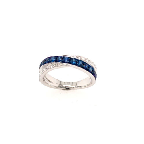 .93CT DIAMOND & AAA SAPPHIRE 18KT WHITE GOLD 3D CRISS CROSS INFINITY LOVE RING