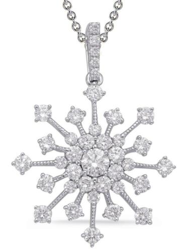 14KT WHITE GOLD LOVE FLOATING PENDANT. 3D FLORAL FILIGREE SNOWFLAKE DESIGN. ROUND DIAMONDS ARE F/G COLOR, VSSI CLARITY .94 CARATS. MEASURES 19mm WIDE. COMES ON A 14KT GOLD DIAMOND CUT 16" INCH CHAIN. WRITTEN APPRAISAL AVAILABLE. COMES IN A PRESENTABLE GIFT BOX.