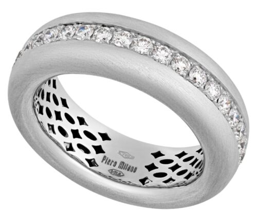 18KT WHITE GOLD WEDDING ANNIVERSARY RING. 3D CLASSIC MATTE AND SHINY ETERNITY DESIGN. DIAMONDS ARE G/H COLOR, VSSI CLARITY .94 CARATS. RING SIZE 6.75. CAN BE SIZED BY OUR MASTER JEWELER UPON REQUEST. WRITTEN APPRAISAL AVAILABLE. COMES IN A PRESENTABLE GIFT BOX.