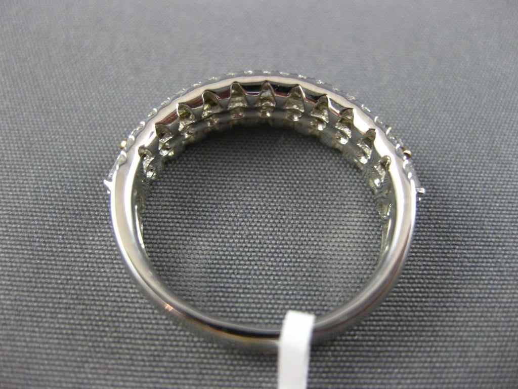 18KT WHITE GOLD WEDDING ANNIVERSRY RING. 3D 3 ROW SEMI ETERNITY DESIGN. DIAMONDS ARE F/G COLOR, VSSI CLARITY .94 CARATS. MEASURES 5mm WIDE. RING SIZE 6.50. CAN BE SIZED BY OUR MASTER JEWELER UPON REQUEST. WRITTEN APPRAISAL AVAILABLE. COMES IN A PRESENTABLE GIFT BOX.