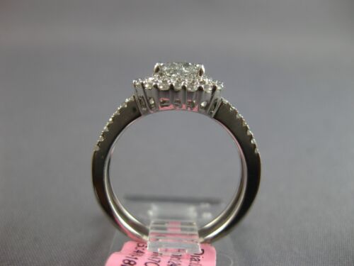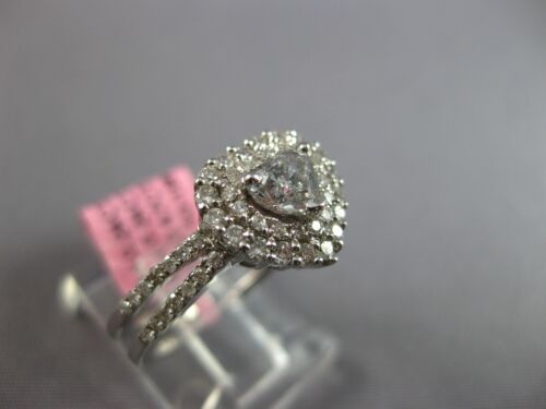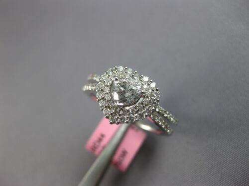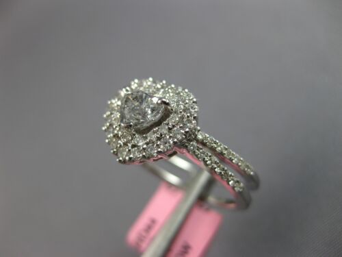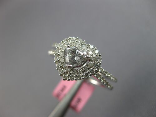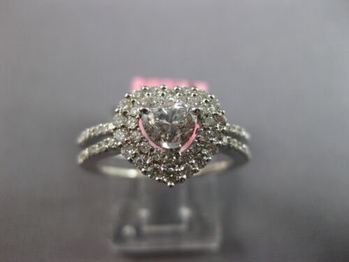 18KT WHITE GOLD ENGAGEMENT RING. 3D DOUBLE HALO DESIGN. ROUND DIAMONDS ARE F/G COLOR, VSSI CLARITY .48 CARATS. HEART SHAPE CENTER DIAMOND IS .47 CARATS. MEASURES 10mm WIDE. RING SIZE 6.5. CAN BE SIZED BY OUR MASTER JEWELER UPON REQUEST. WRITTEN APPRAISAL AVAILABLE. COMES IN A PRESENTABLE GIFT BOX.