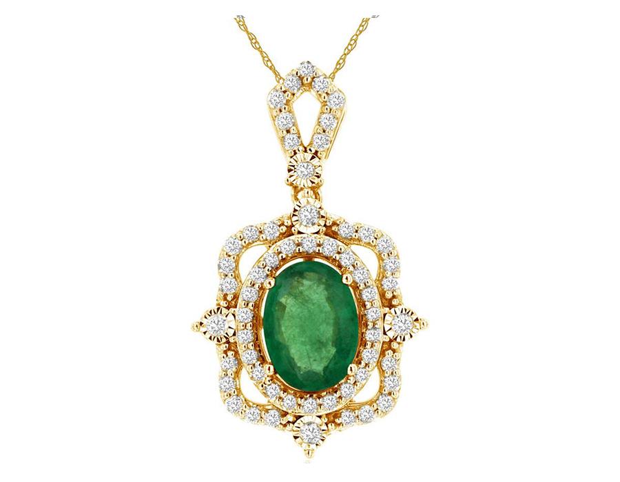 .95CT DIAMOND & AAA EMERALD 14K YELLOW GOLD ROUND & OVAL SQUARE FLOATING PENDANT