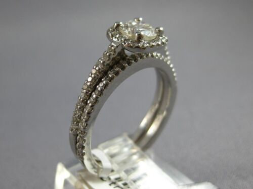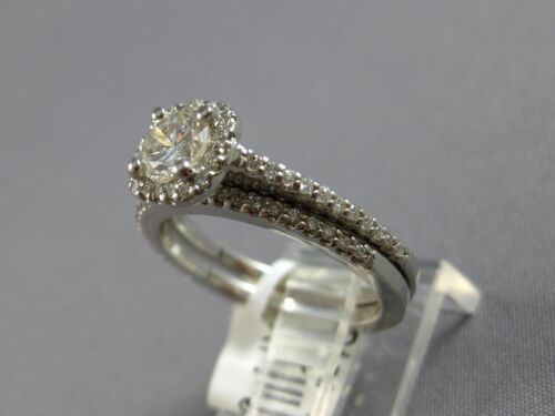 14KT WHITE GOLD WEDDING ENGAGEMENT RING SET. 3D CLASSIC SQUARE HALO DESIGN. DIAMONDS ARE F/G COLOR, VSSI CLARITY. ROUND DIAMOND IS .33 CARATS. SIDE DIAMONDS ARE .63 CARATS. MEASURES 7.5mm WIDE. RING SIZE 6.25. CAN BE SIZED BY OUR JEWELER UPON REQUEST. WRITTEN APPRAISAL AVAILABLE. COMES IN A PRESENTABLE GIFT BOX.